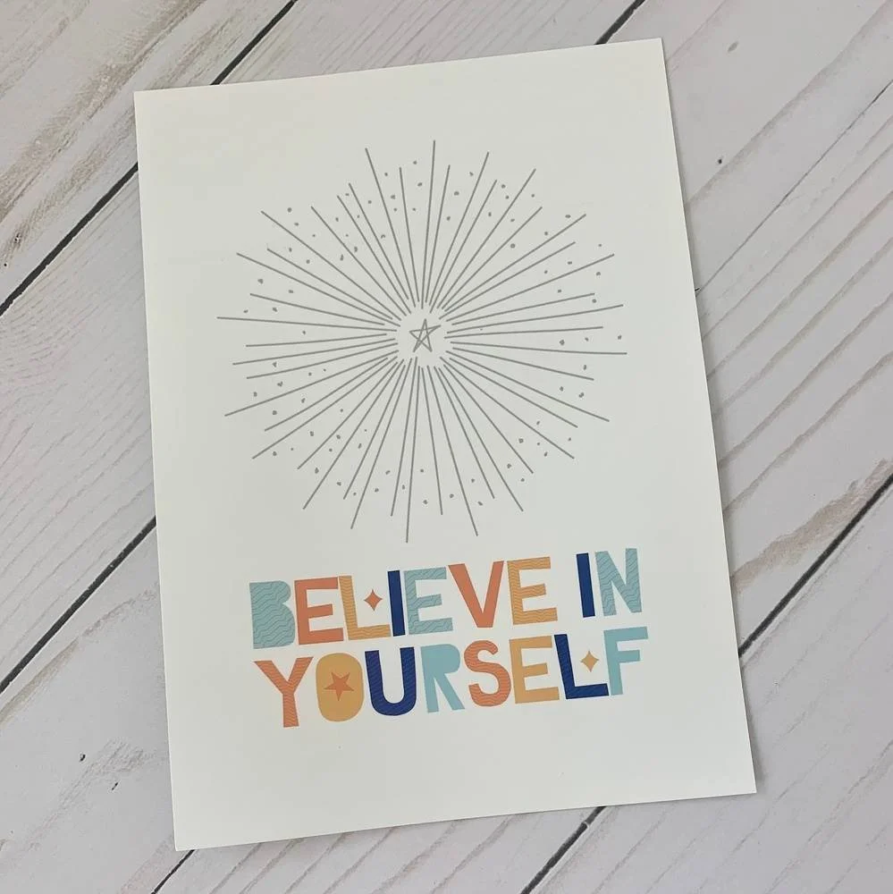 This inspirational print is the perfect addition to any girl's room decor. The 5x7 size is easy to frame, keep on a desk or hang on the wall. And, it's perfect as a daily reminder because when you believe in yourself, you become capable of great things.